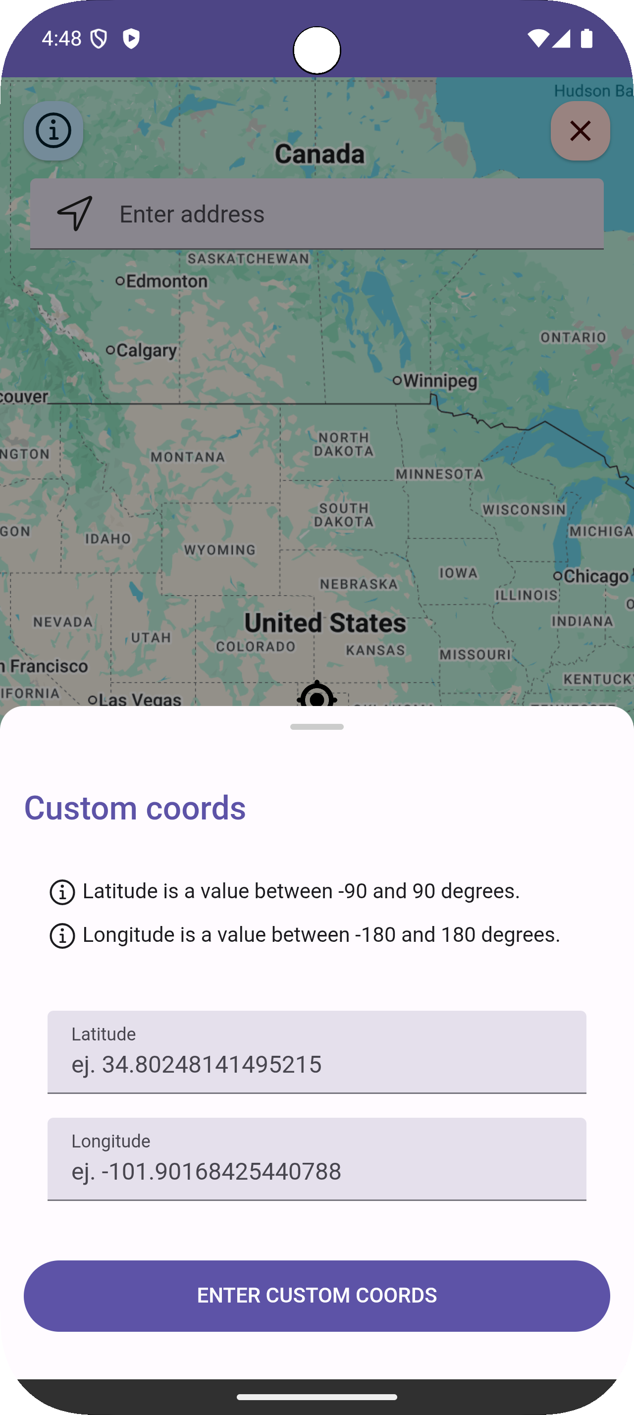 - Enter custom locations