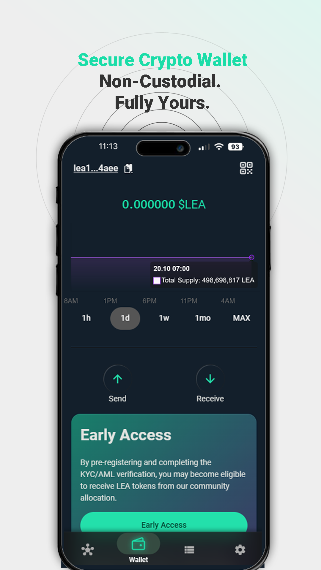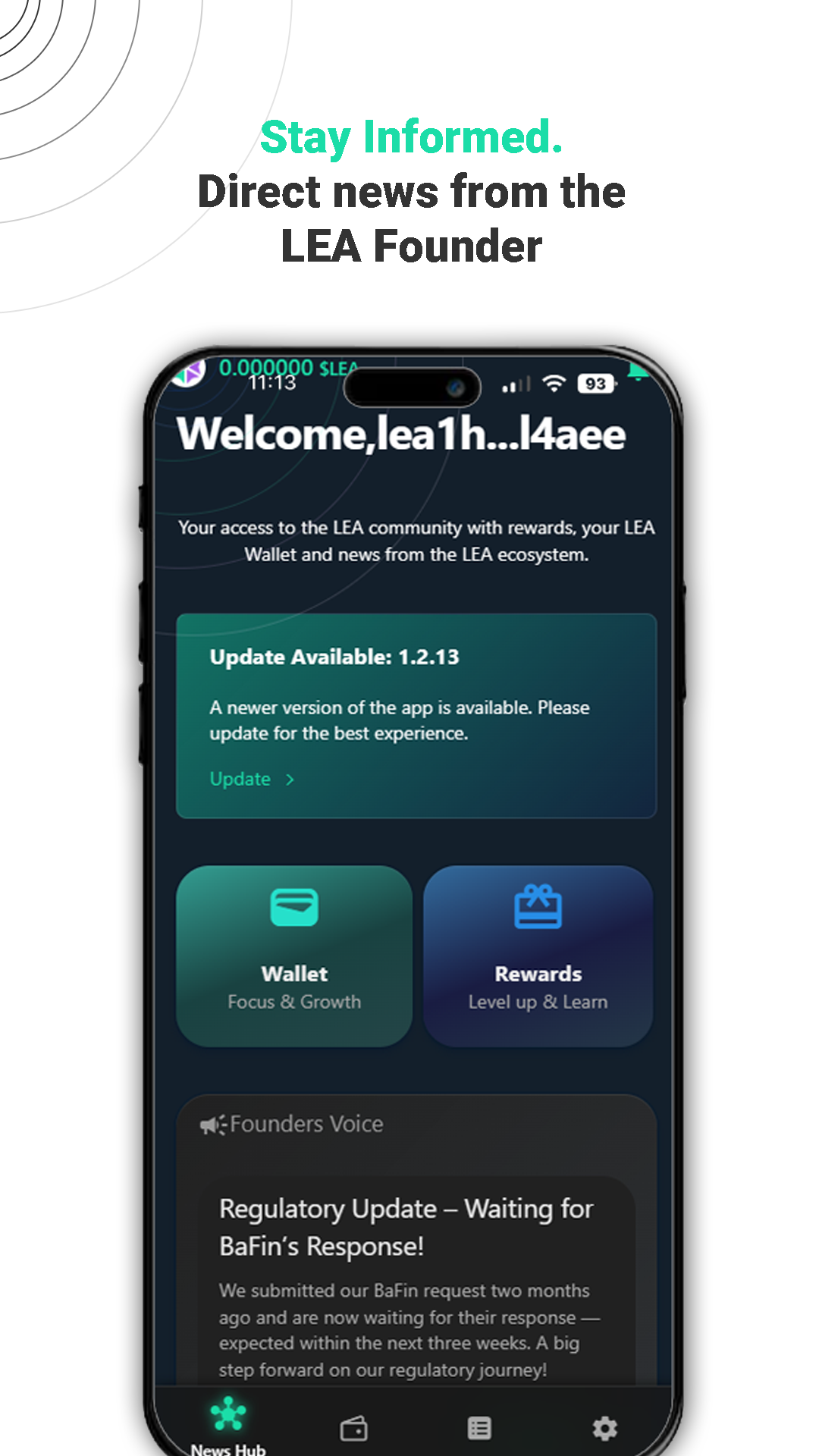 The app provides a seamless entry point into the LEA ecosystem — enabling users to create a secure, non-custodial wallet, participate in early missions, earn XP and $LEA rewards, and follow project updates directly from the founding team.