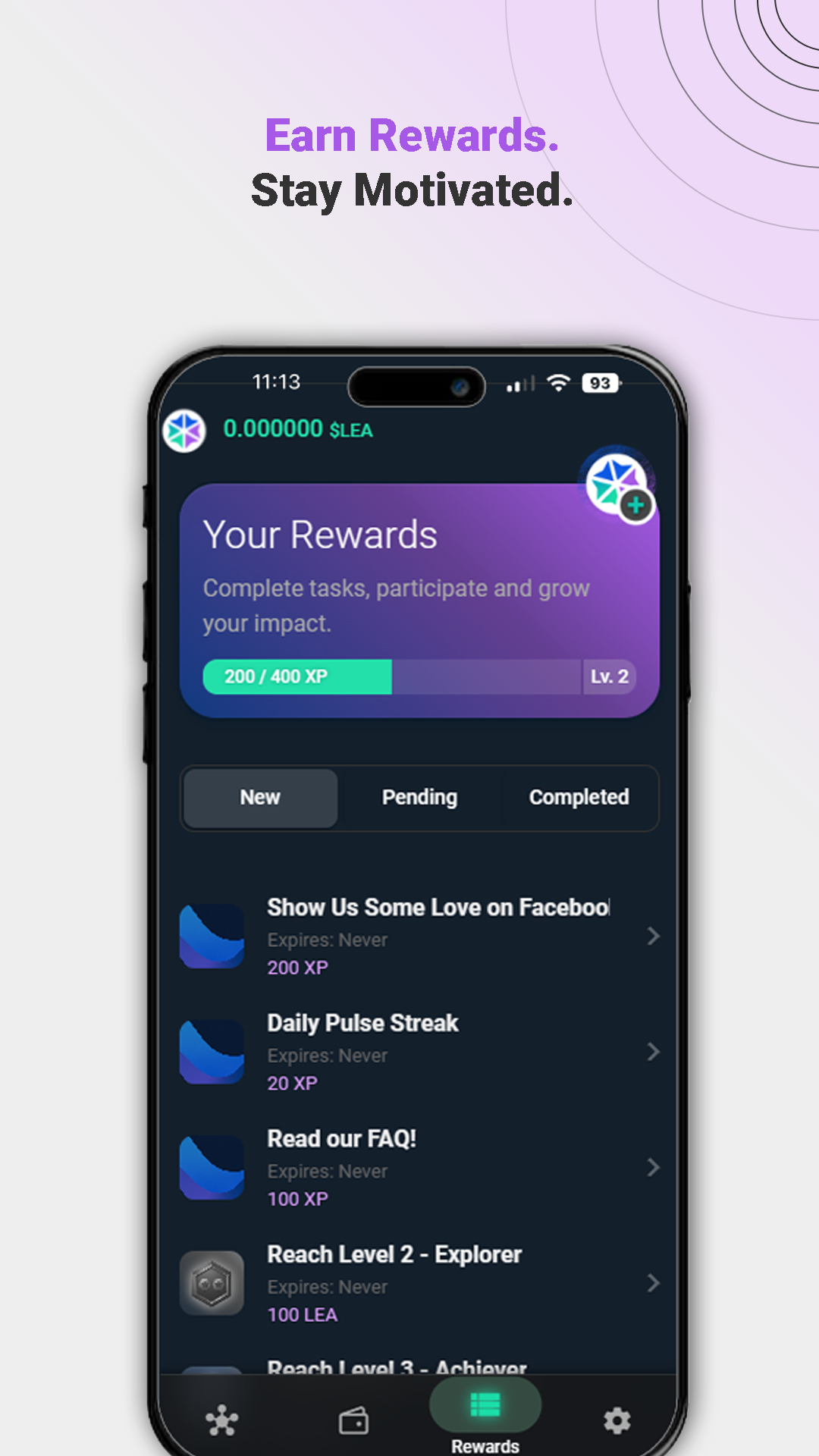 - XP & Reward System – Complete tasks, gain XP, and unlock $LEA token rewards.