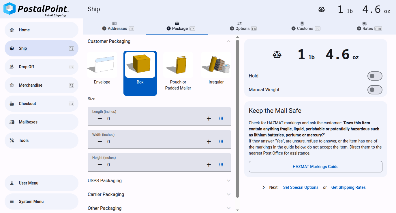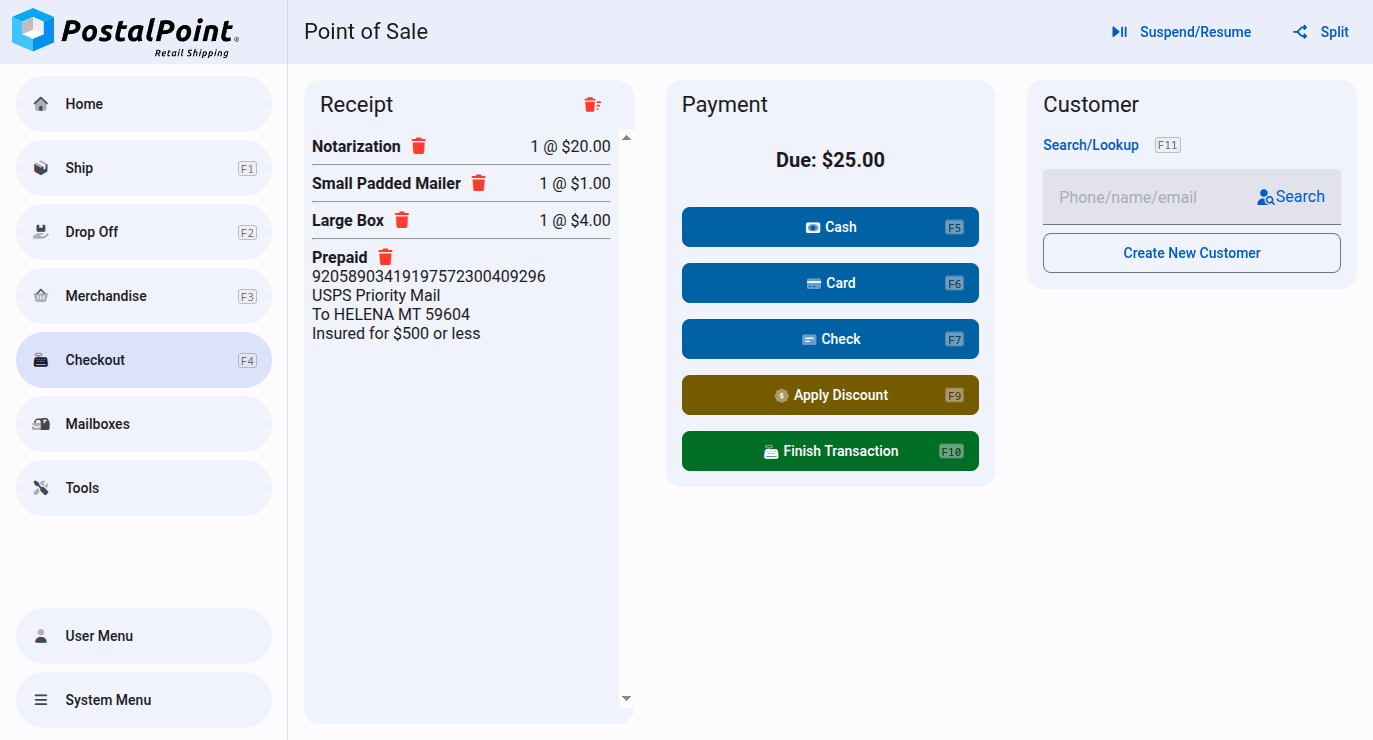Run a pack-and-ship store, sell shipping services, rent mailboxes, sell merchandise, and more with PostalPoint.